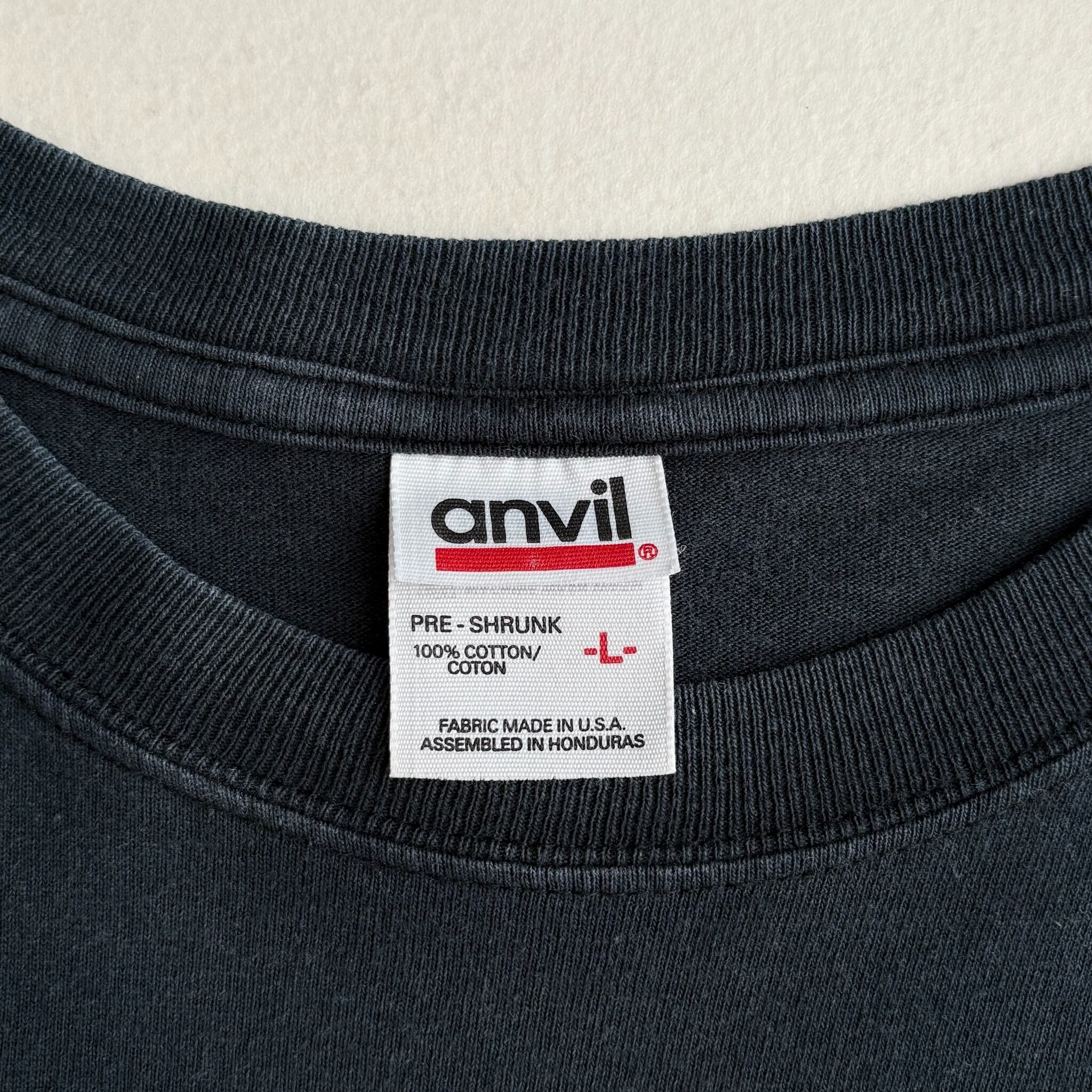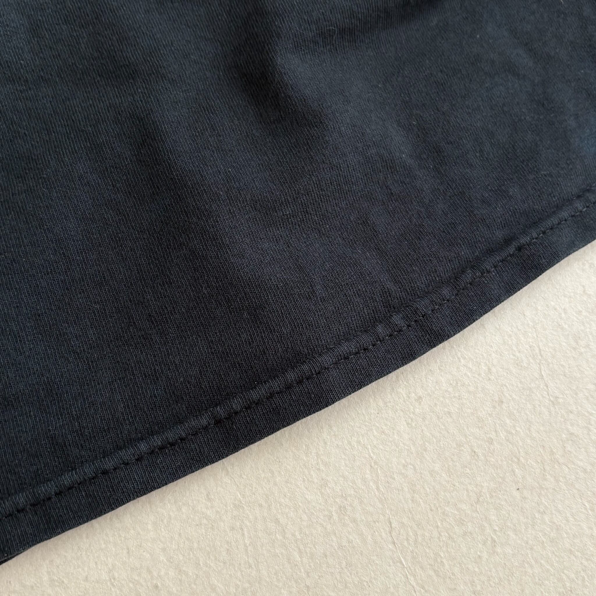 Detail hem double stitch with anvil tag.