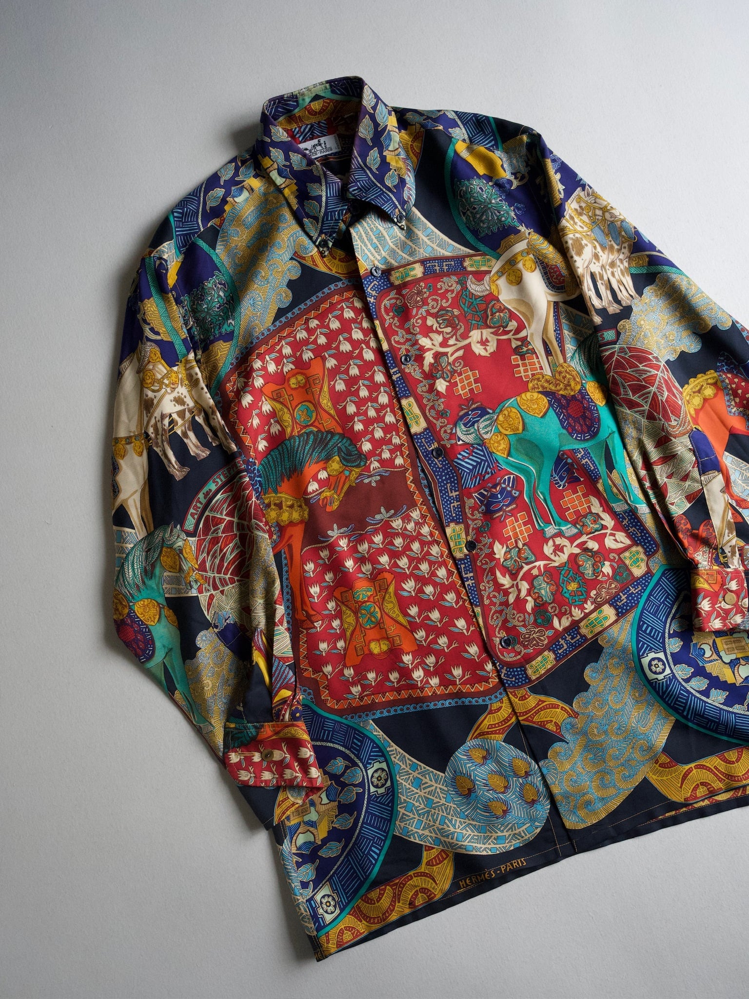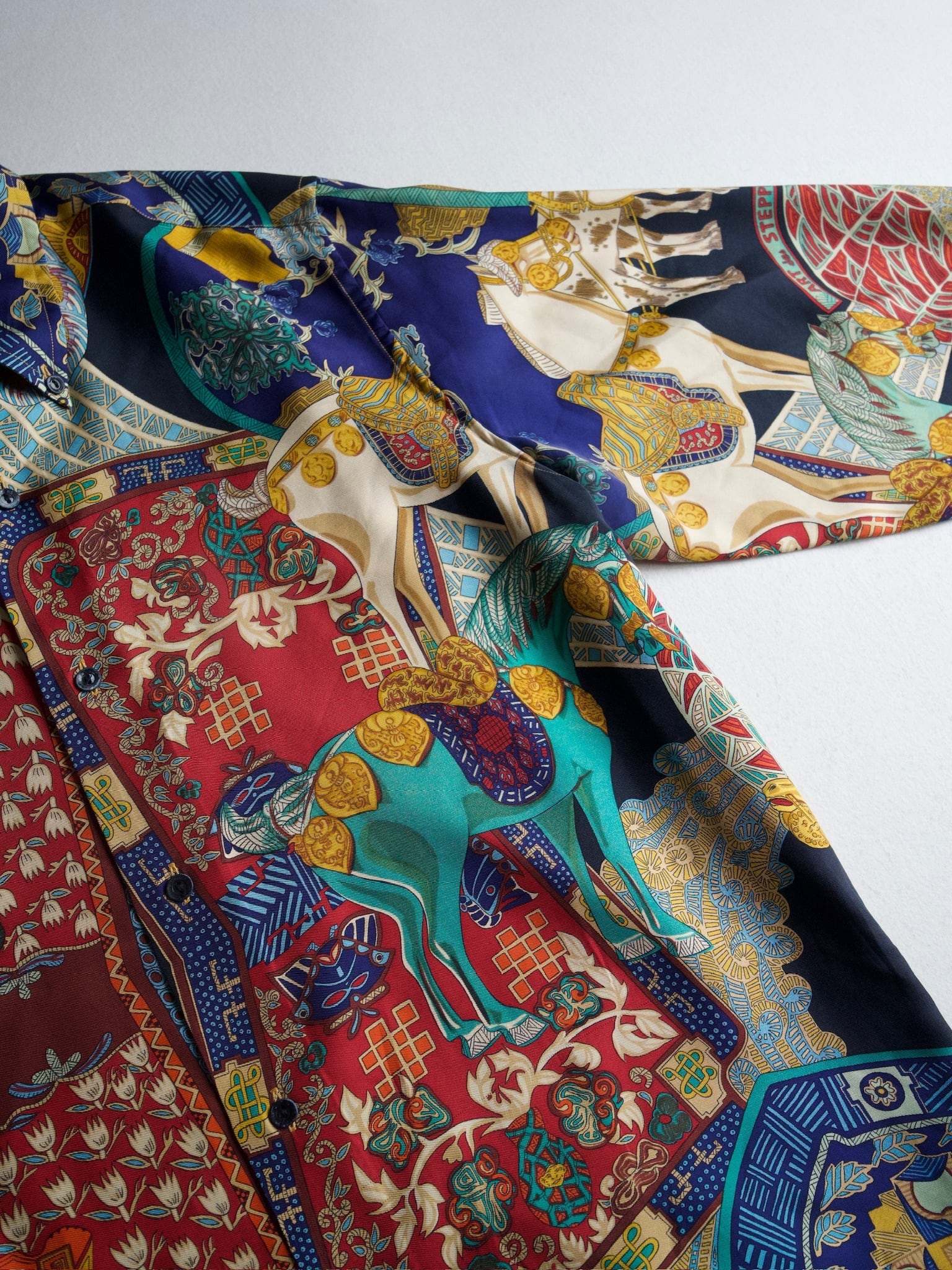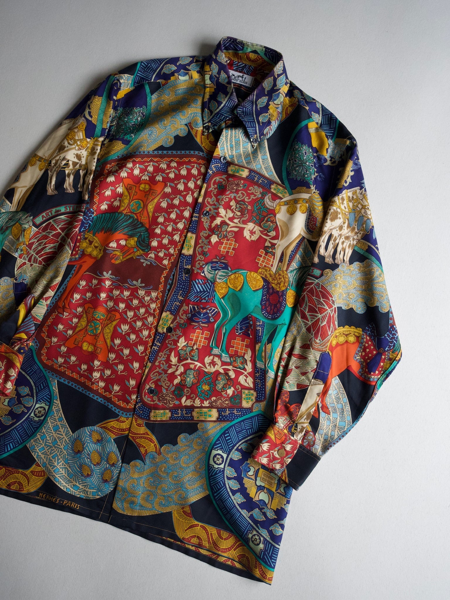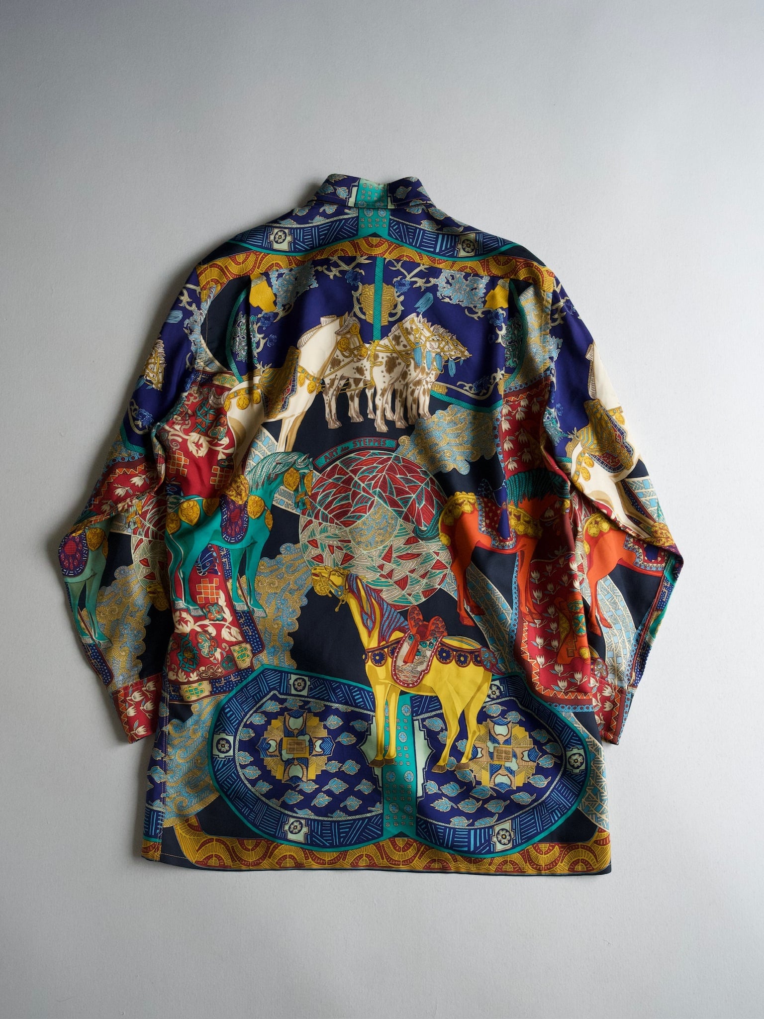 Hermesを象徴とする馬と民族が描かれており、まさに着るアートです。