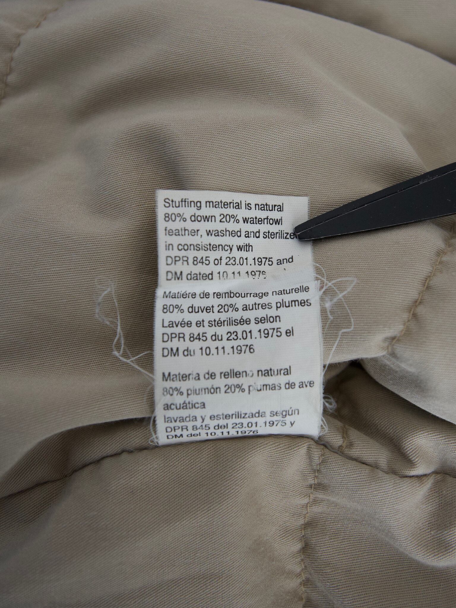 素材組成はコットン100%で中綿はダウン80%、フェザー20%
