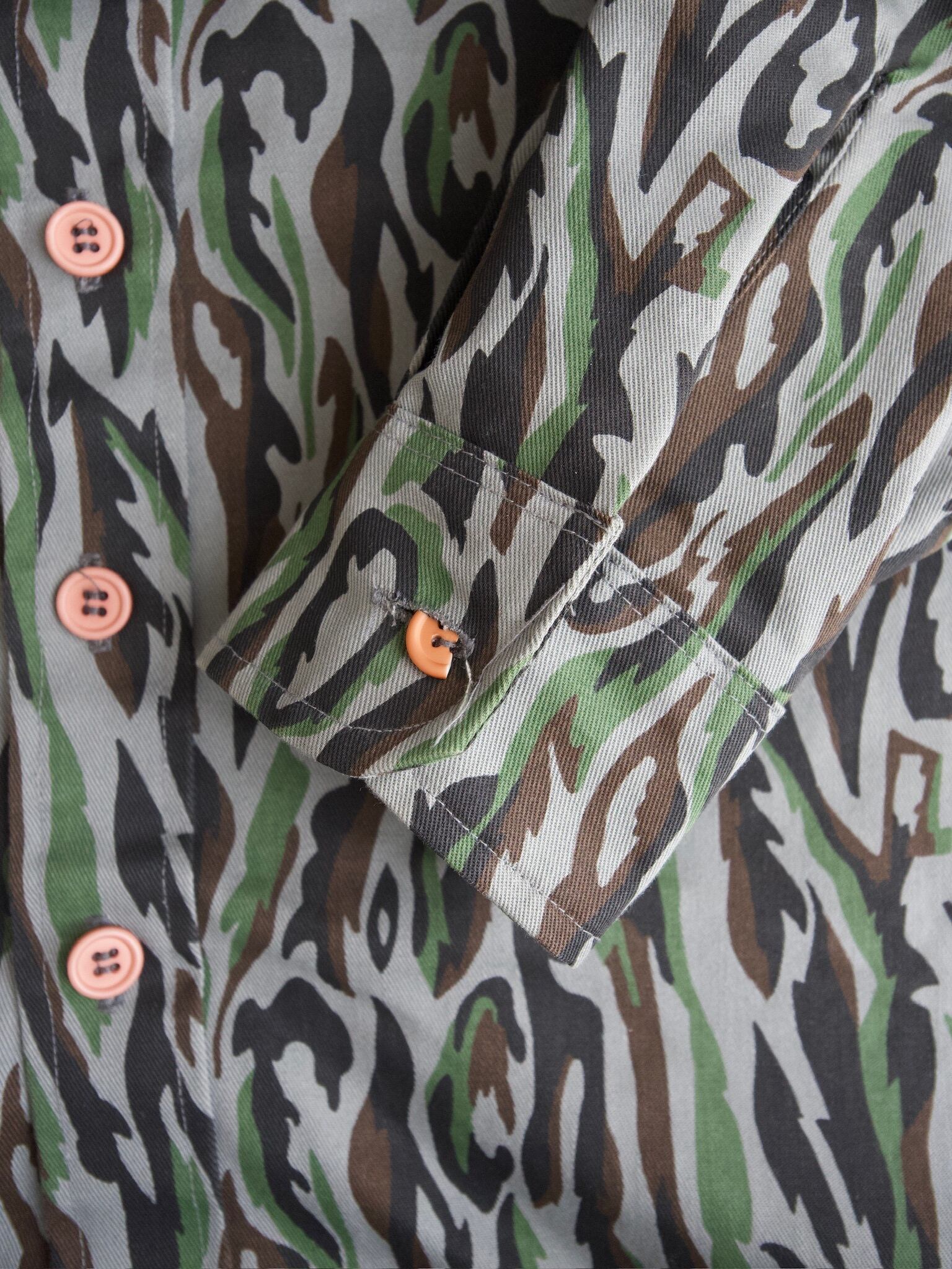 Features epaulettes and has a shirt-jacket style.