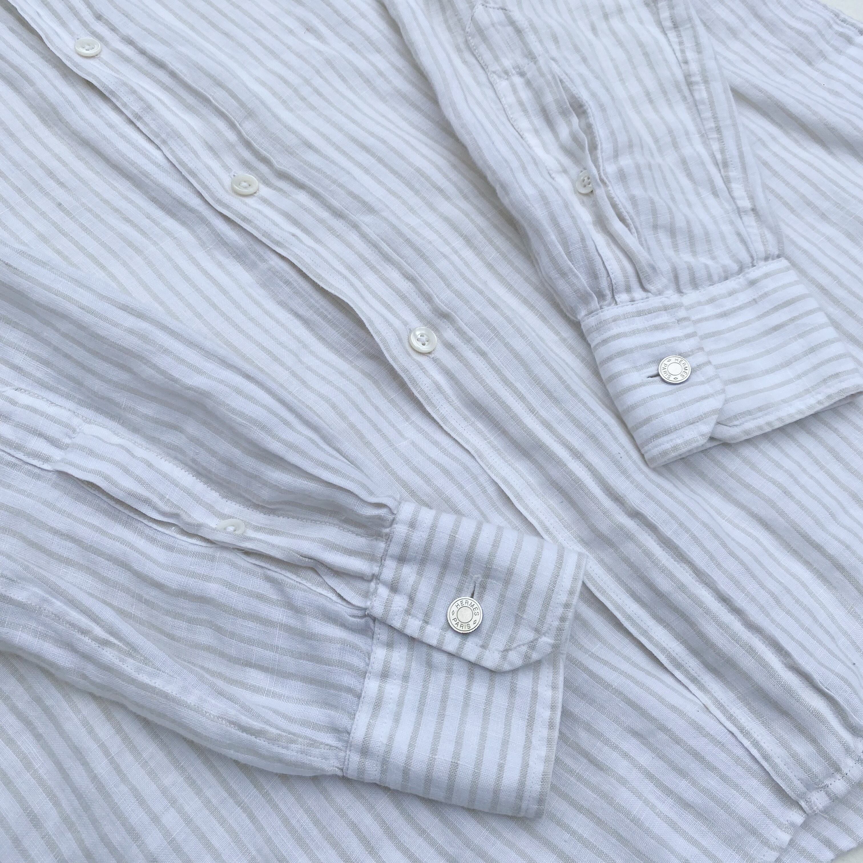 HERMES stripe longsleeve linen shirts