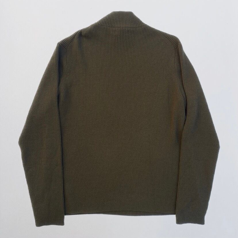 カラーはグリーンとブラウンの中間のような色合いで渋く、ハイネックなのも嬉しいポイント。