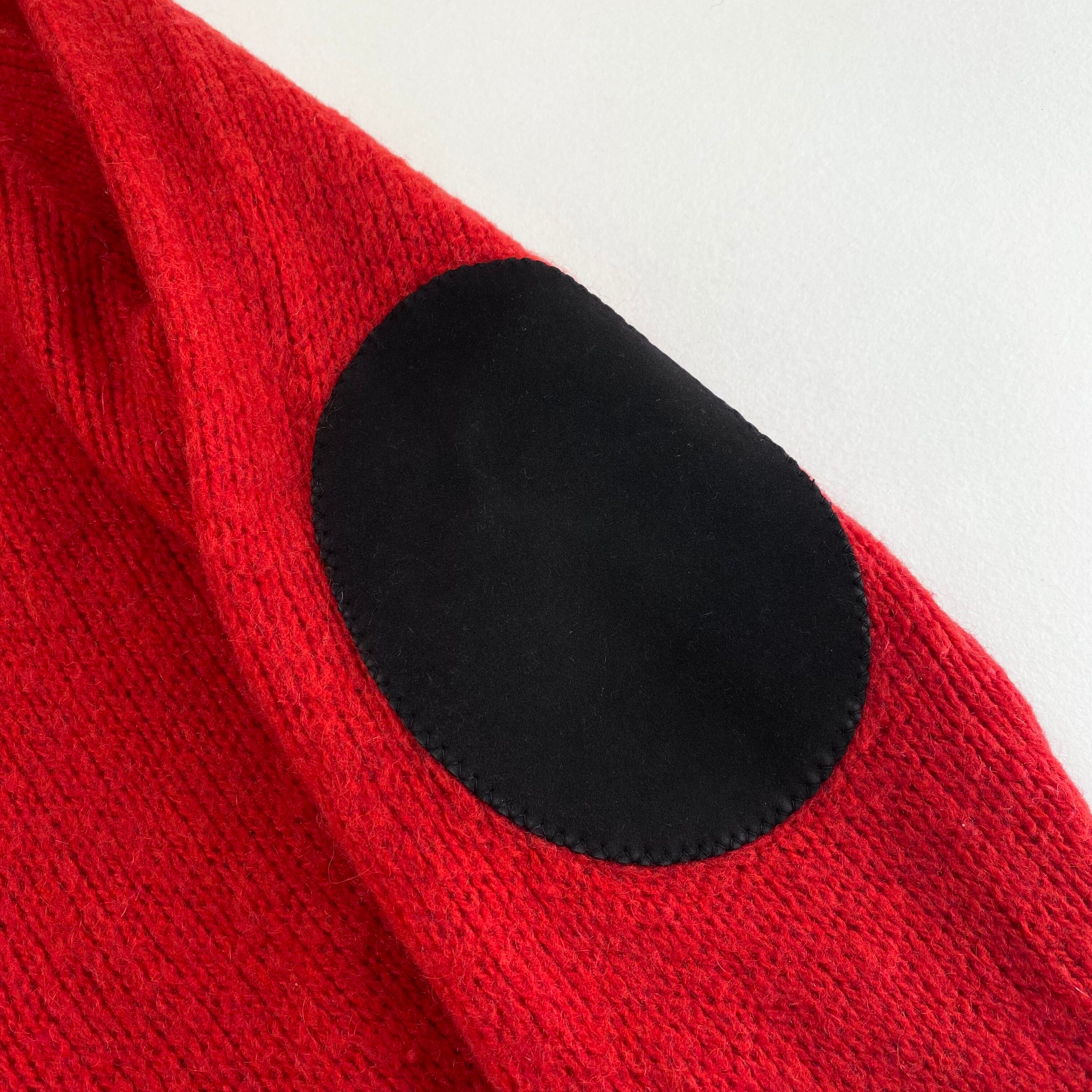 This is a 1960s mohair knit with elbow patch.