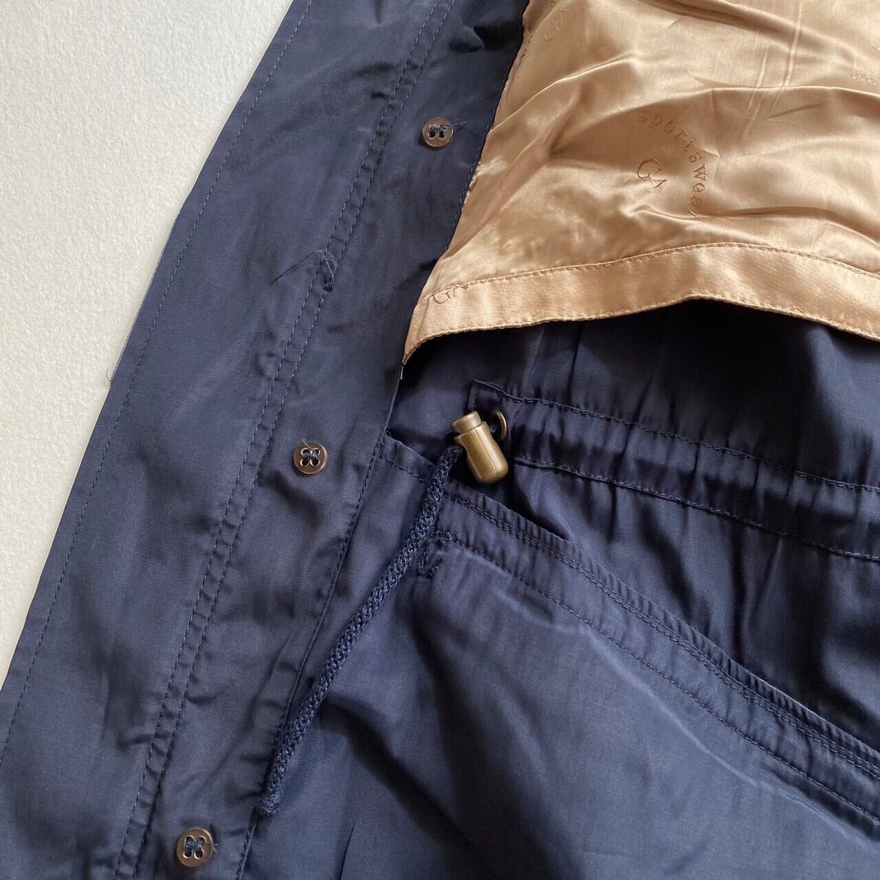 モッズコートですが生地に光沢感があり、ボタンやジップは最高級品を使っているため品のある1着となってます。