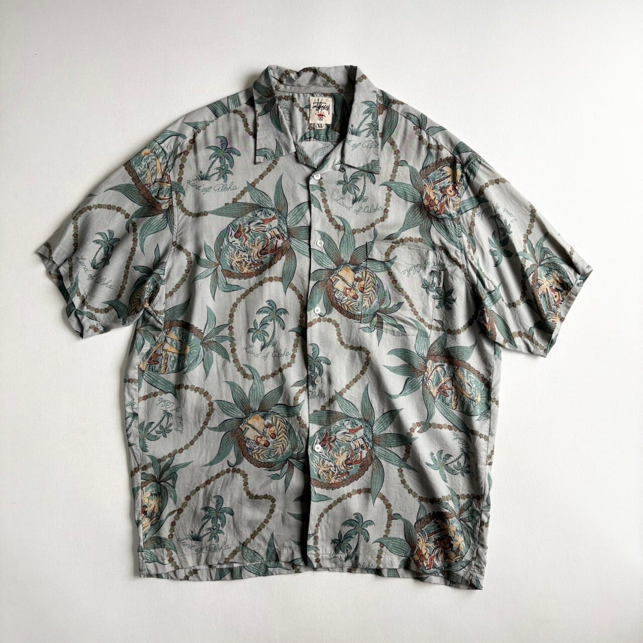 1990s stussy hawaiian shirt "Land of aloha"
